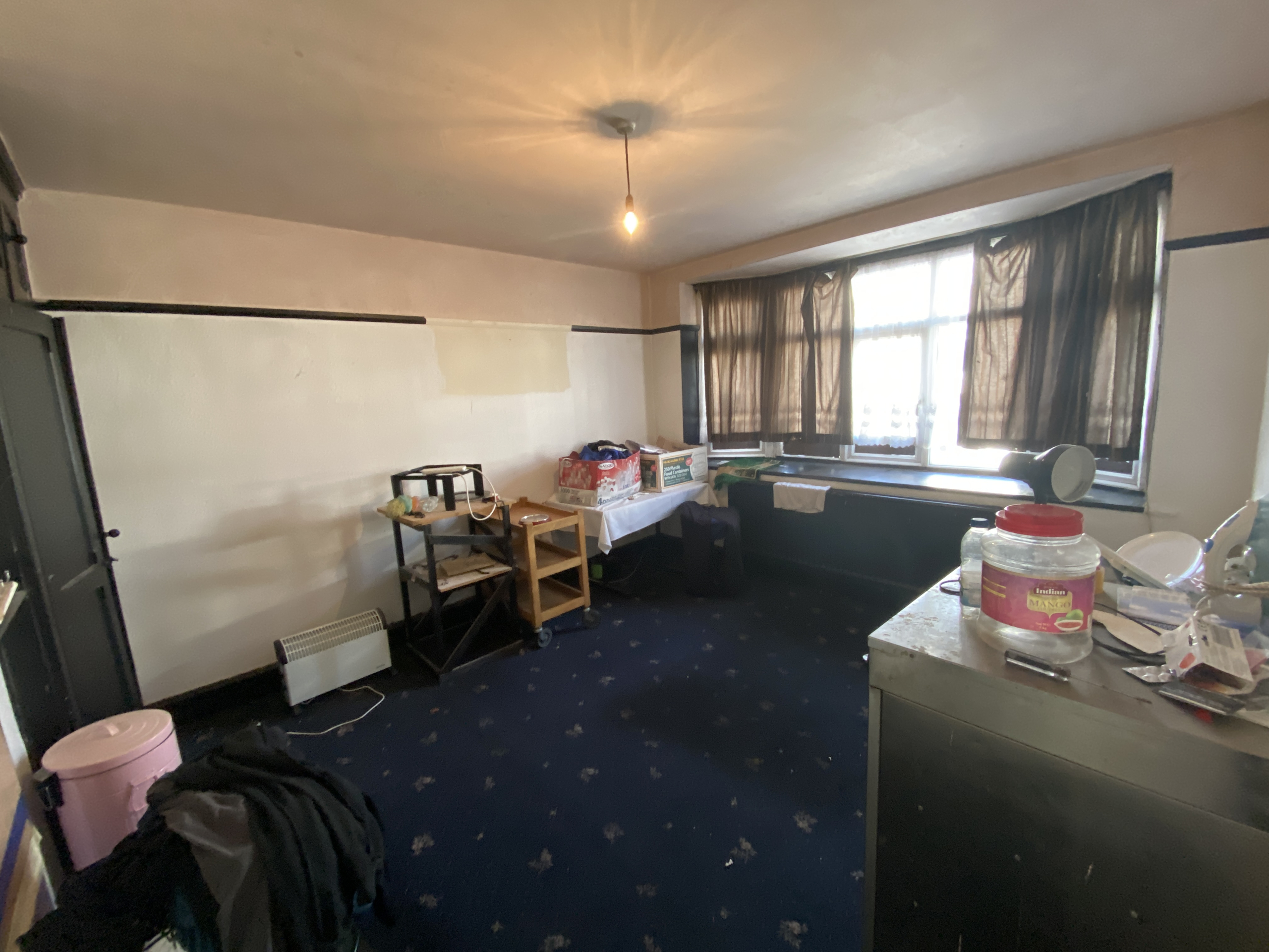Three-bedroom first floor flat with detached garage in need of modernisation being offered with a 990-year lease and land with development potential stpp. Located in Christchurch town centre.